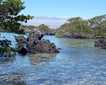 Captain Cifuentes moved and anchored the ship in scenic Buccaneer’s Cove and here we had a choice between snorkeling or a Zodiac cruise along the weathered and sculpted cliffs. No sooner had we anchored than the captain announced there were two active manta rays right beside the ship, so we took our Zodiac ride immediately after breakfast! While we watched from the Zodiacs, our Video Chronicler Ivan filmed these beautiful creatures underwater. Two groups went out to snorkel in the cool water among myriad fish species. We were entertained by a young sea lion gracefully swirling through schools of endemic black striped salema and grabbing small fish as often as he could.