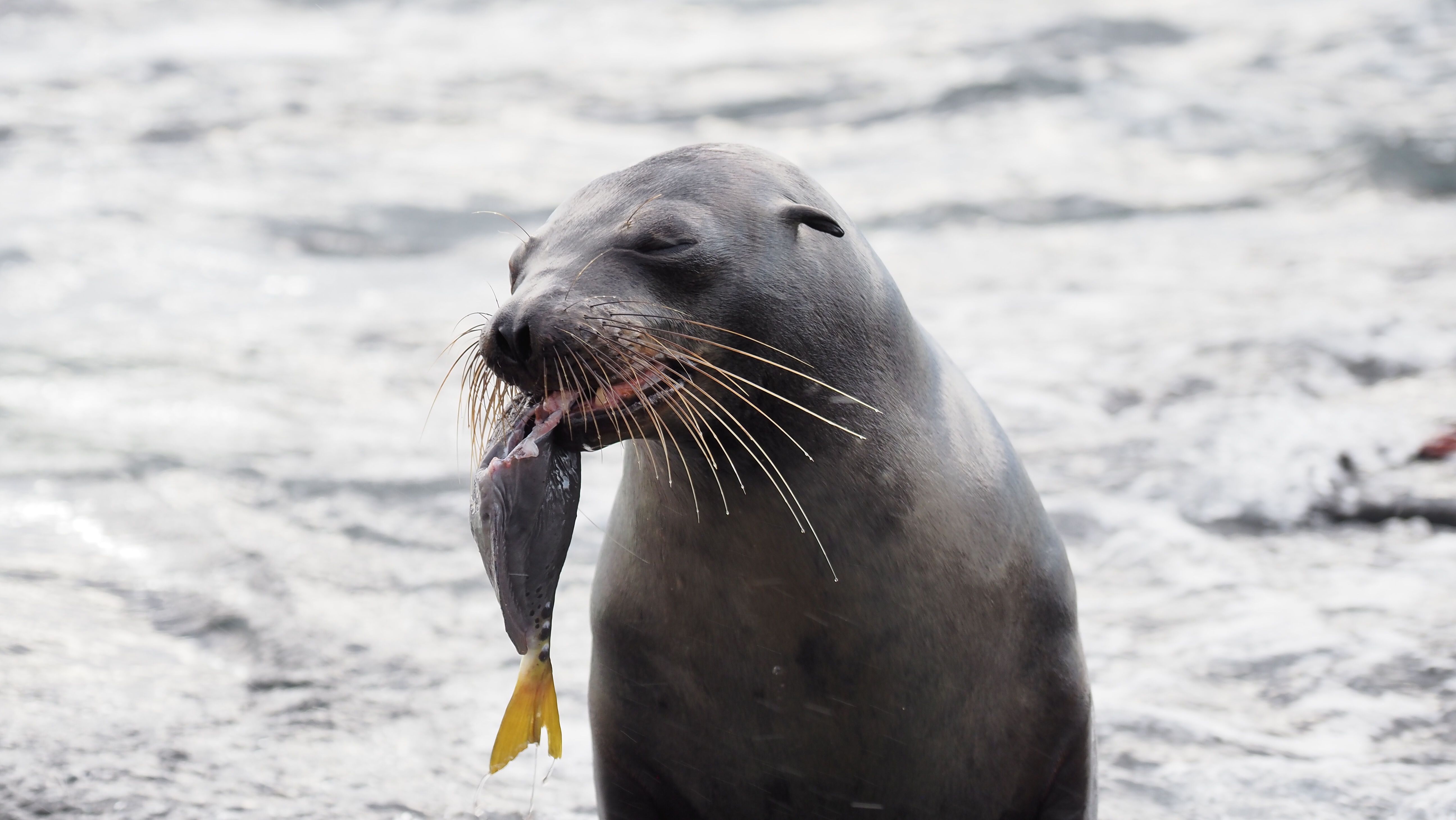 Today we visited Santiago Island. Located in the central northwestern part of the archipelago, the island is surrounded by hot- and cold-water currents. This area is suitable for penguin colonies. Our first activity was kayaking along the channel created in between a volcanic formation known as Chinese Hat and the main Santiago Island. Here, we found the very famous blue-footed boobies, Sally Lightfoot crabs, herons, many sea lions, and even flamingos flying over our heads! In the second half of the morning, we explored the coastline with Zodiac tours and then snorkeled in the same area. This shallow water channel with a sandy bottom is a spectacular snorkeling site. We found endemic garden eels as well as stingrays, octopus, and many tropical fish.