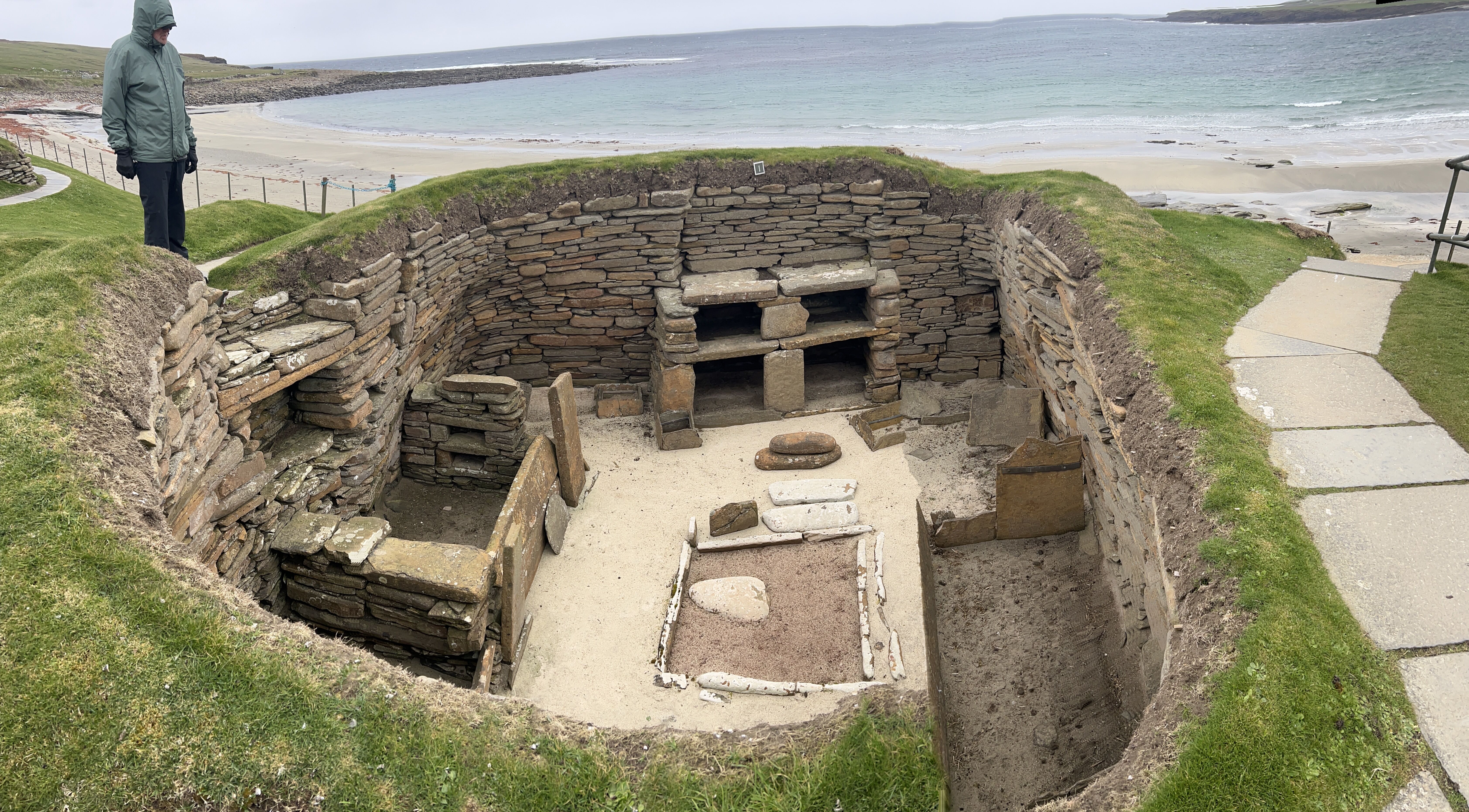 Those who visited the Nuragi took a short bus ride to a scenic overlook over the Bay of Porte Conte. We then made our first visit to the Nuragi site of Palmavera. These early peoples began to construct stone towers and villages as early as the 18th century BCE. The precise meaning of the word “Nuragi” is pure conjecture with some speculating that it refers to stone or fire, deriving from the eastern Mediterranean, possibly Mesopotamia, but that seems unlikely. The sites typically consist of a central tower (the “tholos”) surrounded by small huts where the people lived. The similarity of the earlier “tholos” tower of Mycenaean Greek seems inescapable. In fact, during the excavations, Mycenean ceramics were found in many places in Sardinia. The more complex sites, as is the settlement at Palmavera, consist of two traditional “tholos” towers surrounded by a perimeter stone wall outside of which are a sizeable number of circular stone huts. The interior walls of the towers show the most wonderful corbel structure with the stones decreasing in size and weight as they go upwards with each course of stone overlapping the one beneath by just a bit. And thus, at the end, you have an enclosed, strong, beehive-like structure.