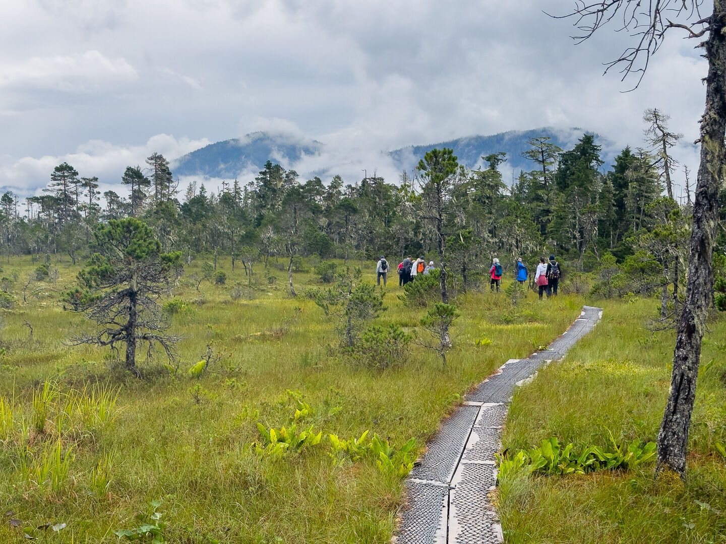 Southeast Alaska’s rainforest was verdant in the morning rain. Small whitecaps textured the surface of the sea as we searched for marine life. Then, ahead in the distance, a big splash. Then another splash, followed by another. The bridge team expertly moved our ship closer. The young humpback whale had unlimited energy for throwing itself out of the water and flopping back in. We watched this youngster breach over and over until we needed to be on our way. Our next off-vessel excursion was on Baranof Island in Kelp Bay. Bushwhackers and moderate hikers passed along animal trails, climbing through Sitka spruces and western hemlocks. Giant bear’s bread fungus sprouted from downed trees. Delicate flowers, including Jeffrey Shooting Stars, decorated the path. We made our way to the boggy muskeg where few trees survive the wet environment. Streams of snowmelt and raindrops were occasionally blocked by the busy work of beavers. The forest was quiet and warm while hardy Zodiac cruisers toured the shoreline to view waterfalls and gulls hitching a ride on a floating log. Once back on board, we felt the warm comfort of the ship and came to realize that in just a few days, National Geographic Venture has come to feel like home.