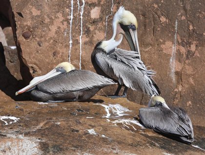 At Chinese Hat we started with a Zodiac ride. We were fortunate to find two juvenile penguins resting on the shore. We spotted three different species of herons: a great blue heron, a striated heron, and a yellow crowned night heron. Marine iguanas were very well camouflaged on the black lava. Finally some blue-footed boobies and brown noddies came to our encounter.