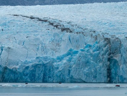 What seems effortless making our way through the fjord, I couldn’t help but feel that we are taking these waterways for granted when compared to the thousands of years’ worth of glacial movement that we just managed to travel in an hour’s time. After using its pathway and admiring its handiwork, we round the bend for the grand reveal of the artist itself: South Sawyer Glacier. The grand National Geographic Sea Bird seems insignificant while in the path of this fossil. The thunderous cracks and calving grabs the attention of its onlookers but does not ever seem to faze the hundreds of indifferent harbor seals.