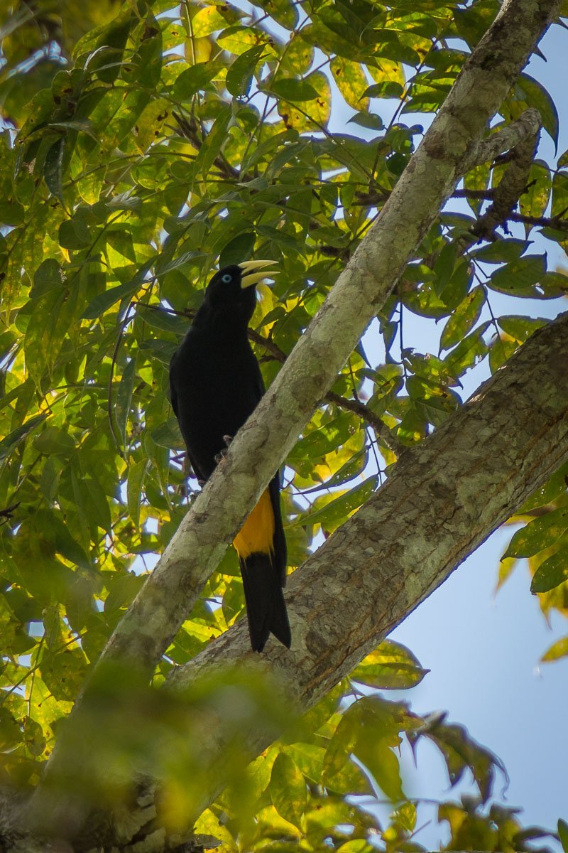 Supay Creek is one of the tributaries of the Ucayali River. It finds its way along this land through primary rainforest and varzea forest covered by grasses and secropia trees. This region is full of opportunities for all sorts of birds such as raptors and fruit eaters. Therefore, a great opportunity for us to observe and learn about how this ecosystem works. The sightings were as unique as the place. There was a vibrant group of yellow rumped caciques, all of them courting, singing and building nests. There were monkeys as well and the coolest of all sightings - a flock of toucans.