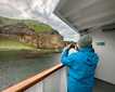 The Inians are truly a magical place. As we approached the islands this afternoon, we found humpback whales. Everywhere. More than a dozen whales, feeding and fluking all around us, were visible as we approached our anchorage, the Hobbit Hole. With the humpbacks around us, we eagerly boarded Zodiacs for a water-level view of the feeding frenzy. We Zodiac cruised, following the whales as they dove for fish. Calves played at the surface as moms hunted, and a couple whales burst forth from the ocean and breached, showing off their incredible power and size.