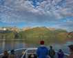 During the morning, we explored the scenic cove of Pavlof’s Harbor on the southeast shore of Freshwater Bay, Chichagof Island, and area known for its healthy salmon stream. We were optimistic that we might still see a bear during our last day exploring Southeast Alaska. We were not disappointed! At the base of a small waterfall, we spotted a coastal brown bear casually gorging itself on salmon as we watched, spellbound, from the safety of our expedition landing crafts only a few yards away. The bear, enjoying its meal, seemed oblivious or at least indifferent to our presence. For nearly an hour, we watched the animal devour fish after fish until it calmly walked up the river bank rocks and into the forest. Late summer and early fall is the time to fatten up and prepare for the long winter ahead. Come November and the onset of snow, brown bears will leave the coastline and head to higher elevations near or above treeline. Biologists debate whether bears truly hibernate or just den up and sleep during the winter. Pregnant sows will give birth to tiny, one-pound cubs while sleeping within the den and nurse them until spring. We returned to the ship after our morning adventures for lunch and were relaxing in the lounge when another bear was spotted on the beach south of Pavlof Harbor. Although more distant than our first encounter, we all enjoyed another exceptional sighting of a coastal brown bear. But the wildlife viewing wasn’t over yet! As we sailed south along Chatham Strait, we encountered a pod of killer whales swimming nearby. Crusing alongside the pod, we counted a group of about ten that included one large male. His large dorsal fin rose nearly six feet above the water‘s surface. Guests spent the remaining time reading or chatting with friends. We wrapped up our day with the captain‘s dinner followed by the guest photo slideshow, which we enjoyed as we sailed toward Sitka through Peril Strait. Have we seen it all? Hardly! But we left with a sense of fulfillment, knowing that we saw a lot! And maybe one day we‘ll return and finally see some elusive moose!