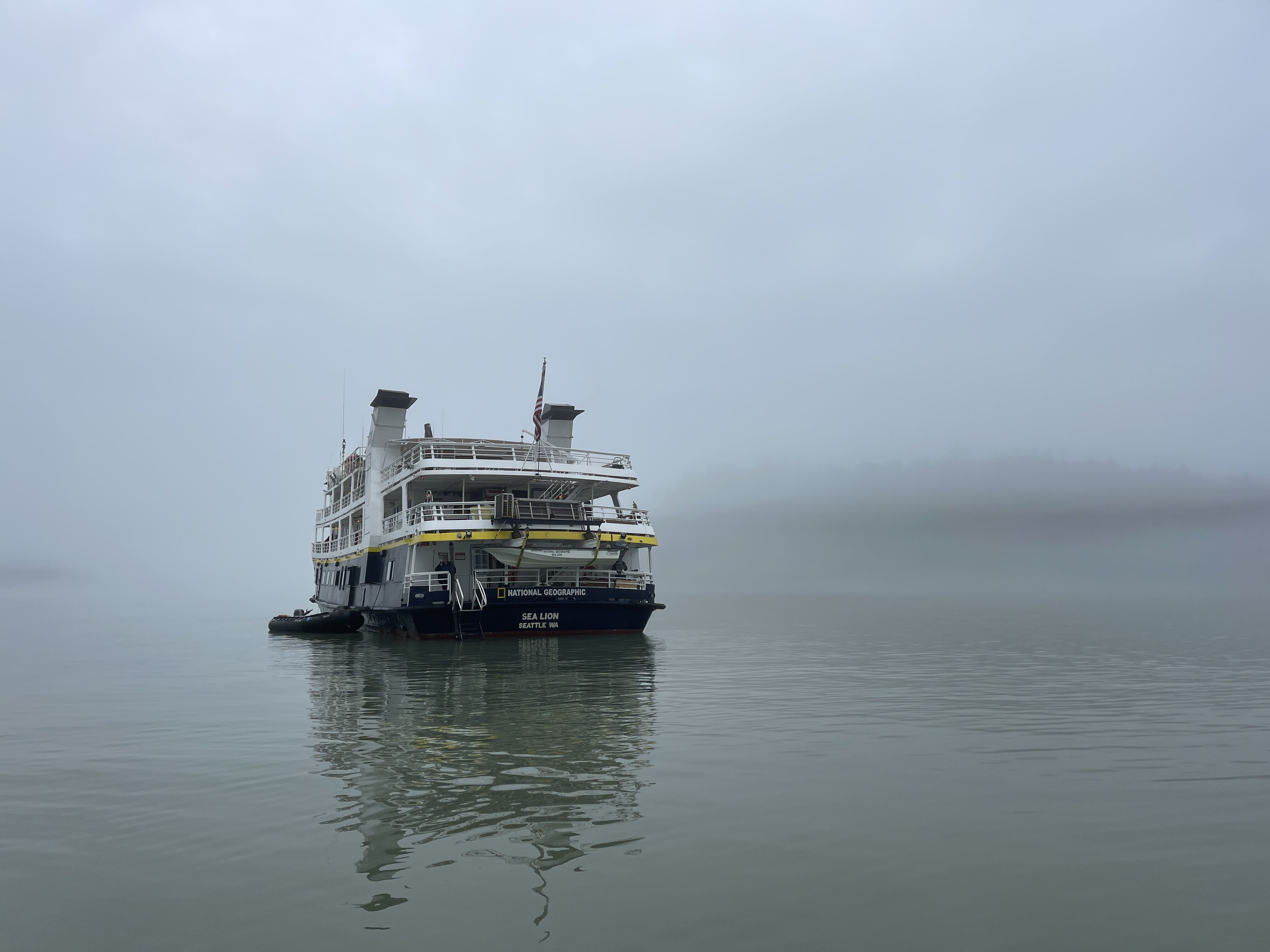 On the last full day of our voyage, we woke in Endicott Arm near the Dawes Glacier. We spent the morning enjoying Zodiac tours to the face of Dawes Glacier and watched multiple calving events. We were also able to spot several harbor seals, waterfalls, and a couple harbor porpoises on the way. After lunch we had the opportunity to participate in a polar plunge. Forty people decided to brave the frigid water for a short swim. Those of us not eager to jump into glacier water were able to watch from the bow. After the polar plunge, we warmed up on board as we started transiting towards Juneau. On the way, we stopped at a beautiful waterfall to once again admire the amazing natural beauty of Alaska. During our farewell recap, we were treated to a quick visit by a humpback whale. We ended our day with a slideshow made up of our favorite photos and memories of an amazing week on board National Geographic Quest .