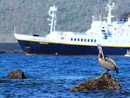 Once back onboard, the ship was repositioned to the south to Tagus Cove, a place where we spent the rest of the day. Before lunch and while navigating, naturalist Jonathan Aguas had a presentation on the Human History of the Galapagos Islands.