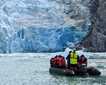 After sailing overnight to our northernmost destination at 70 degrees north, we awoke to the stunningly charming town of Uummannaq. With only about 1,400 residents, this town is still the eighth largest town in all of Greenland. The colorful homes are dwarfed by the monolithic mountain of the same name that shoots up almost 4,000 feet above the town. While floating along the shores of Uummannaq, many of us piled on layers of clothing and headed out to the outer decks to enjoy the soaring fulmars, gulls, and guillemots in the area. More than anything, we were in awe of the massive icebergs floating by in close proximity to both the town and our ship. Their size, textures, infinite shades of blues, and even the sounds they projected were all mesmerizing to each of us. Soon after, we warmed up inside the ship while enjoying a talk by Sisse Brimberg, our National Geographic photographer. During her engaging talk, she shared stories and images of what it is like to be on assignment as a professional photographer.